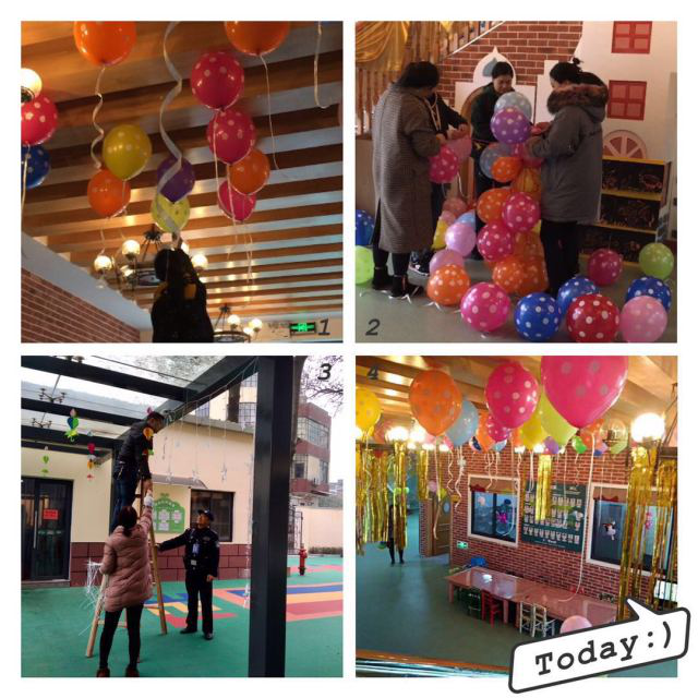 所有老師都齊心協力,精心布置,從教室到大廳,從墻面到天花板……