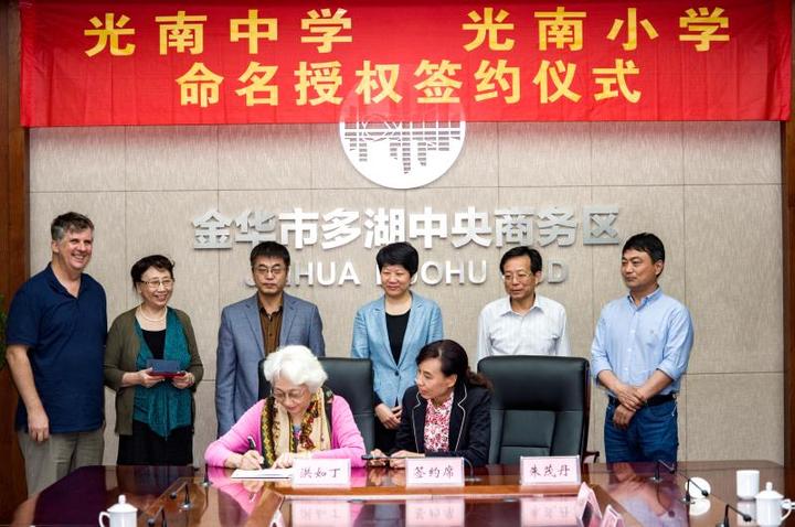 4月4日,人民音樂家施光南先生的夫人洪如丁女士和金東區政府簽訂授權書,多湖初中、多湖小學分別更名為光南中學、光南小學,并均由金華市外國語學校托管,光南中學將掛牌金外合作學校,光南小學將掛牌金外附屬小學。