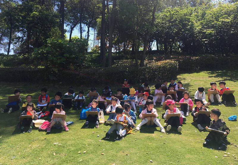 最后,小托班孩子在老師的引導下尋找春天,感受春天的變化,并嘗試用自己的語言、動作表達春天的美麗景色。中大班孩子在老師的指導下開展了戶外寫生“春天的景象”。瞧那認真的小模樣,多像一個個小畫家。