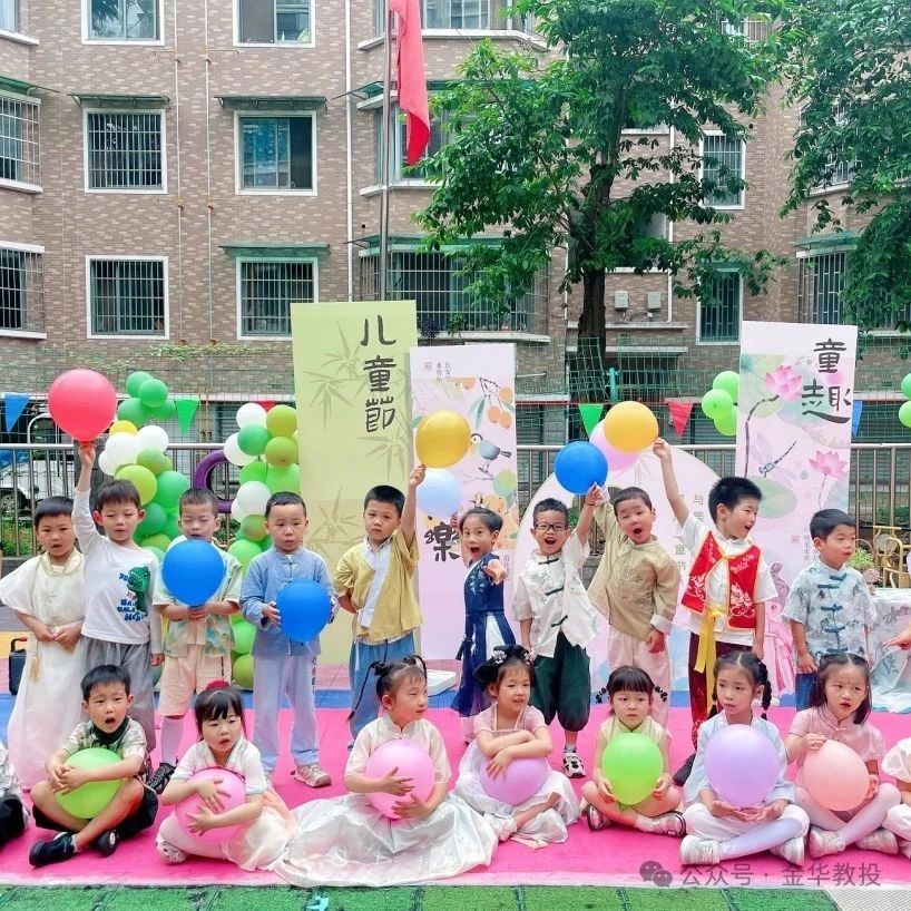金華市外國語學校附屬翰城幼兒園以“童趣端午,歡樂六一,大手牽小手共成長”為主題,將端午節的傳統習俗與六一兒童節的歡樂氛圍巧妙融合。孩子們身著漢服,與家長們一起參與粽趣套圈、端午投壺、賽龍舟等游戲,在體驗傳統民俗的同時,也增進了親子間的情感交流。